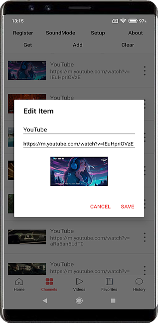 Add, edit and manage your own IPTV channels and online video URLs.